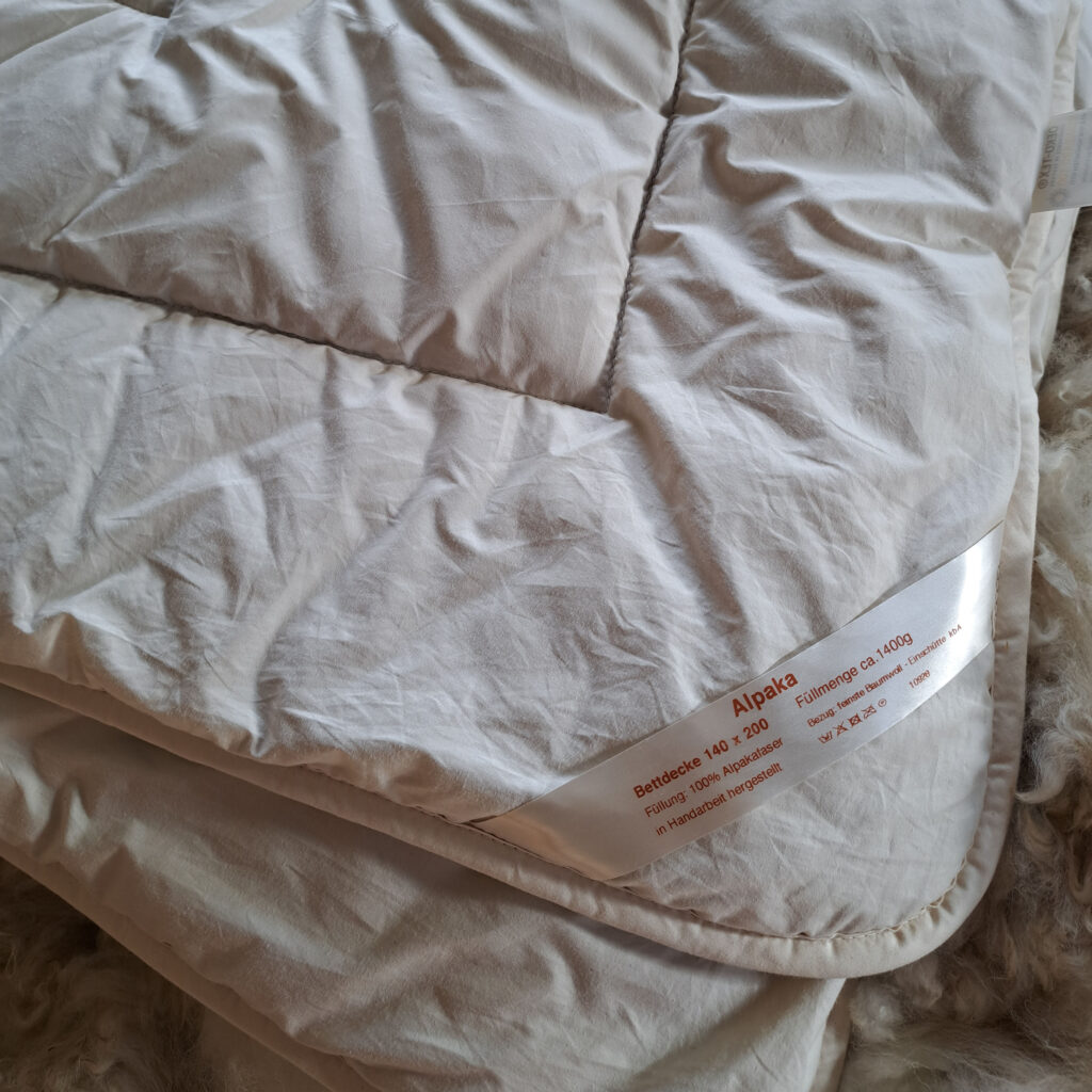 Schlaf dich glücklich! Unsere Alpaka-Bettdecken sind temperaturausgleichend, atmungsaktiv und wunderbar weich. Sie ermöglichen dir erholsamen Schlaf, egal ob Sommer oder im Winter.